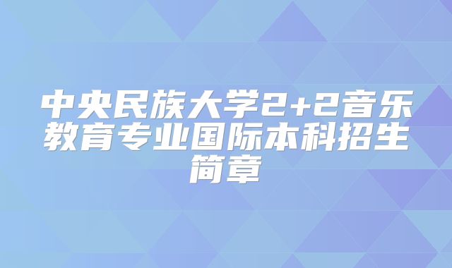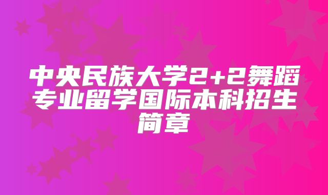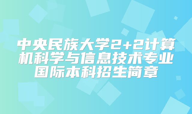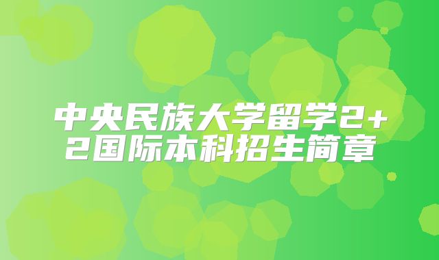 中央民族大学依托中国(教育部)留学服务中心优质海外高校合作资源,开展“2+2国际本科”项目。该项目以培养具有国际视野、通晓国际规则、能够参与国际事务和竞争的国际化人才为目标,支持多国度、多专业、多形式、多层次的升学路径。 查看详情>>